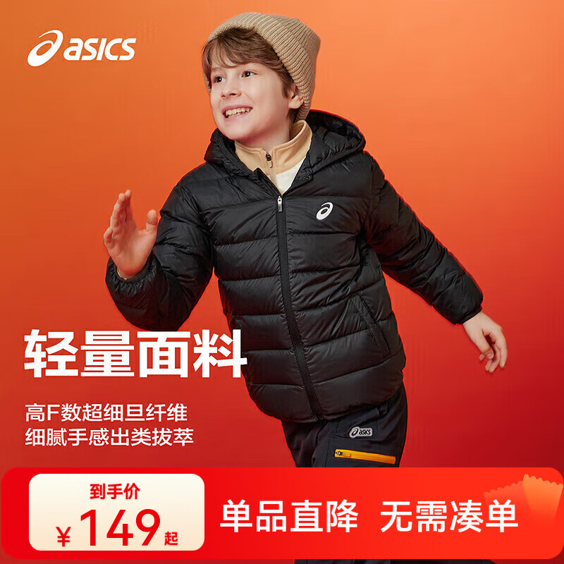 亚瑟士亚瑟士童装25年冬季儿童高柔软三防轻量保暖羽绒服【高充绒量】 黑色 清洁度1000-鸭绒 160 充绒量98.5g
