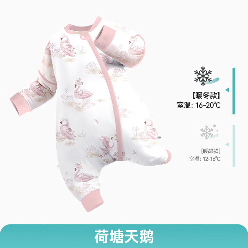 ibaby睡袋恒温婴儿睡袋宝宝分腿式连体睡衣抑菌防踢被【秋冬夹棉】CC 【暖冬夹棉120g】荷塘天鹅(室温16-20℃) 100码【推荐身高90-100cm】