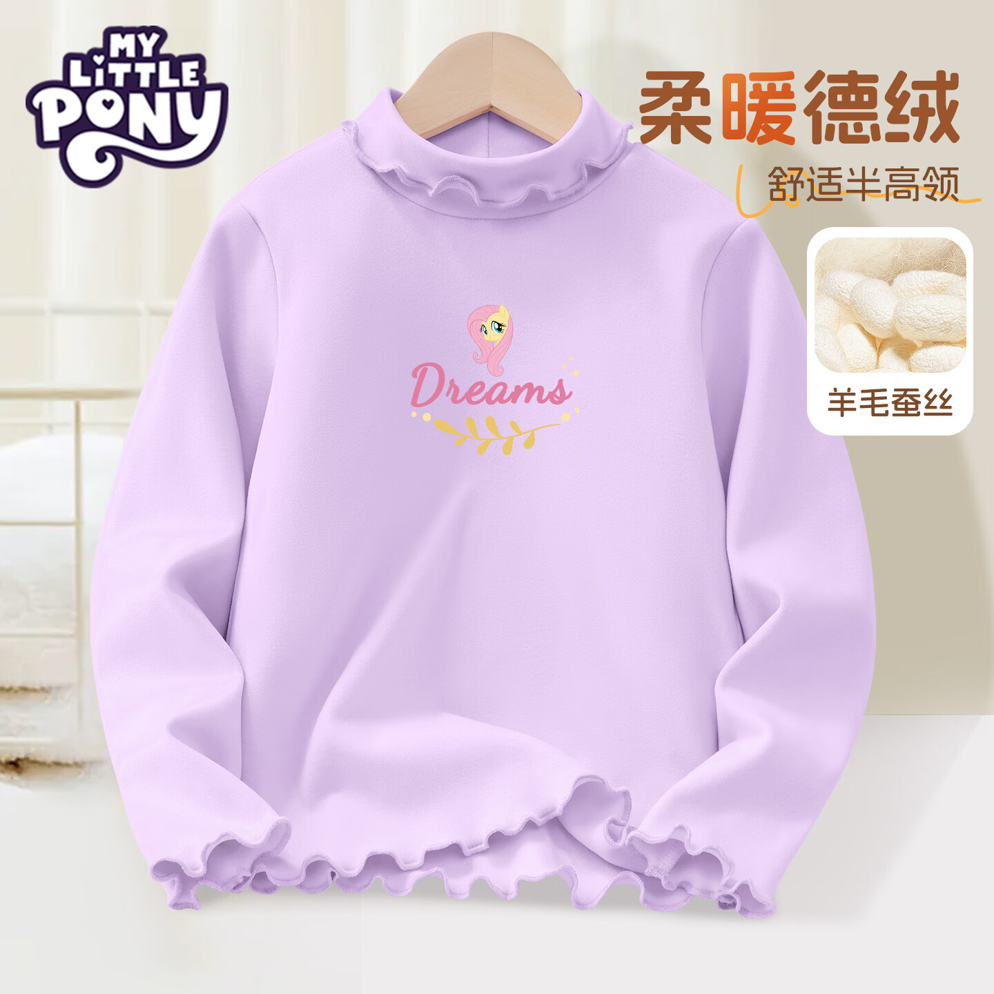 小马宝莉女童德绒打底衫儿童木耳边领保暖内搭2025新款时尚长袖潮秋冬 【含羊毛_德绒打底衫】梦想柔柔紫 120