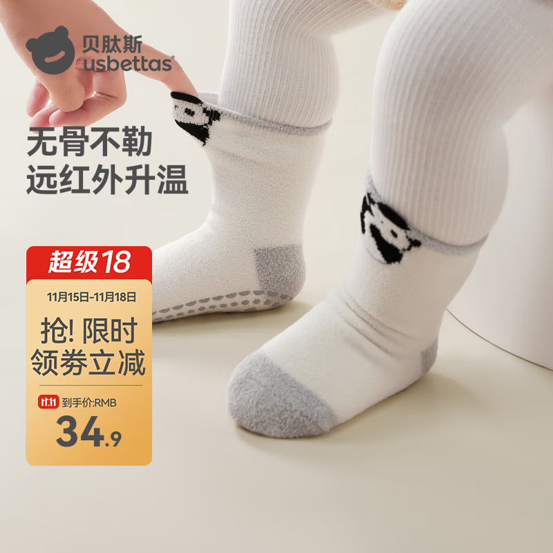 贝肽斯宝宝地板袜秋冬季婴幼儿双面绒儿童防滑隔凉加厚学步防滑袜 锦灰熊猫 0-1岁 7-11cm