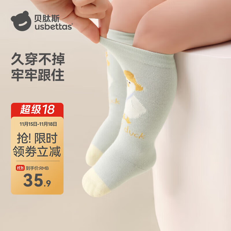 贝肽斯婴儿长筒袜春秋季新生儿男女童宝宝高筒过膝袜不勒腿棉袜子 布丁小熊棉 6-12月 【适合脚长9-11cm】