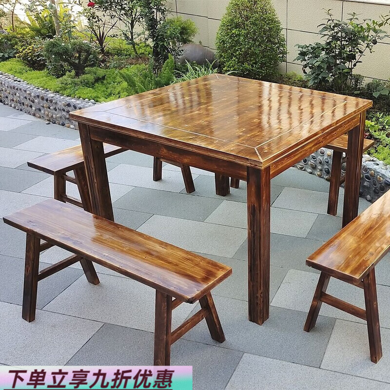 普美森特价全实木四方桌面馆小吃店餐桌农村家用传统方桌饭店吃饭老式桌 1米传统方桌碳化色单桌高度75厘米