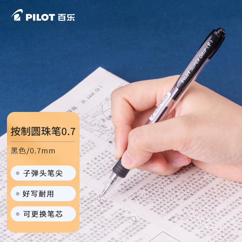百乐(PILOT)按动原子笔走珠笔学生办公考试专用按制走珠笔BPGP-10R 0.7mm黑色