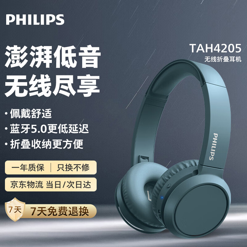 飞利浦(PHILIPS)头戴式蓝牙耳机无线运动耳机网课电脑耳麦苹果华为小米安卓手机通用礼物TAH4205青瓷蓝