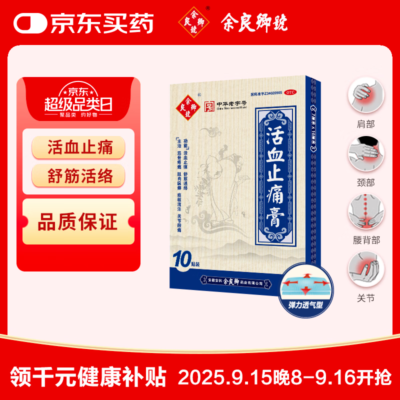 余良卿号 活血止痛膏 贴膏尺寸7cm*10cm*10贴 风湿关节炎止疼贴膏舒筋膏贴余良卿止痛膏