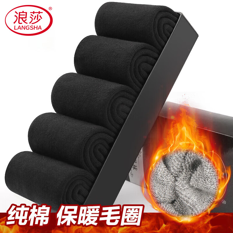 浪莎袜子男纯棉秋冬抗菌保暖加厚绒全毛圈袜吸汗男士中筒舒适毛巾棉袜