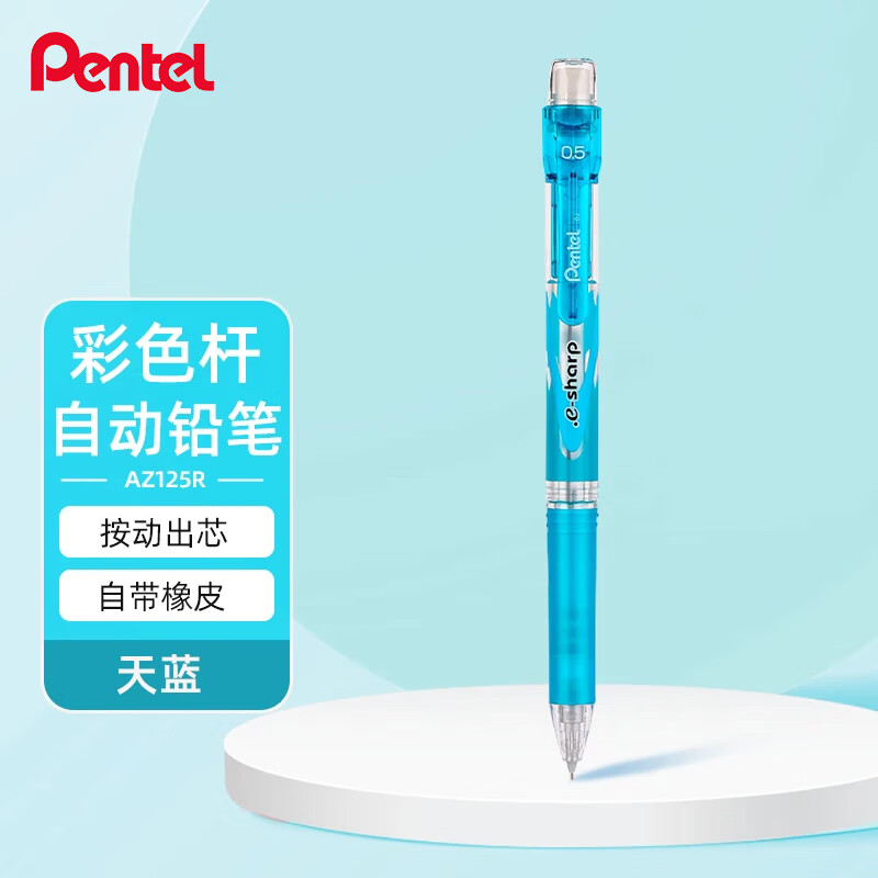 派通(Pentel)AZ125R自动铅笔 0.5mm一二年级小学生书写铅笔绘图考试用活动铅笔尾带橡皮 天蓝单支装