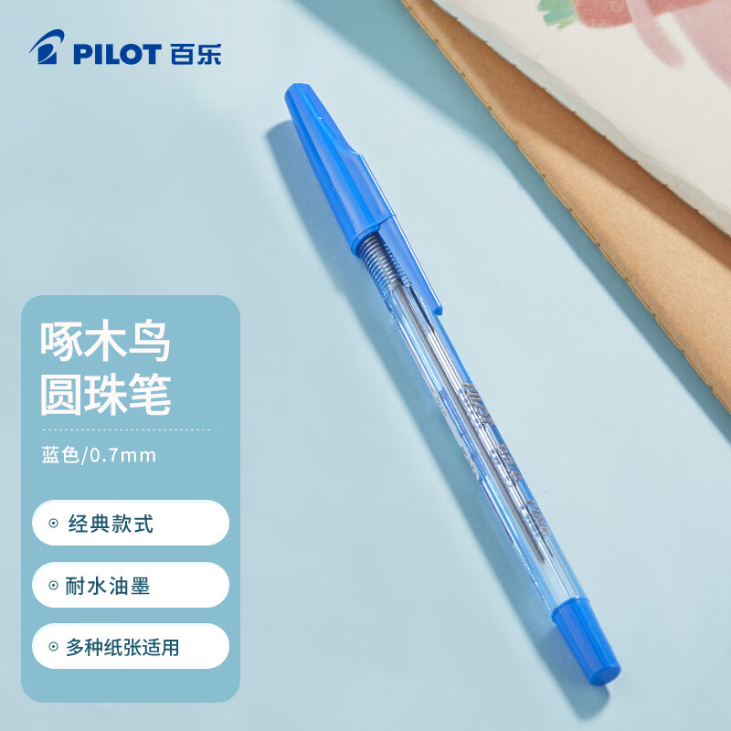 百乐(PILOT)啄木鸟圆珠笔原子笔中油笔走珠笔 经典款办公用笔学生考试BP-S-F 0.7mm蓝色