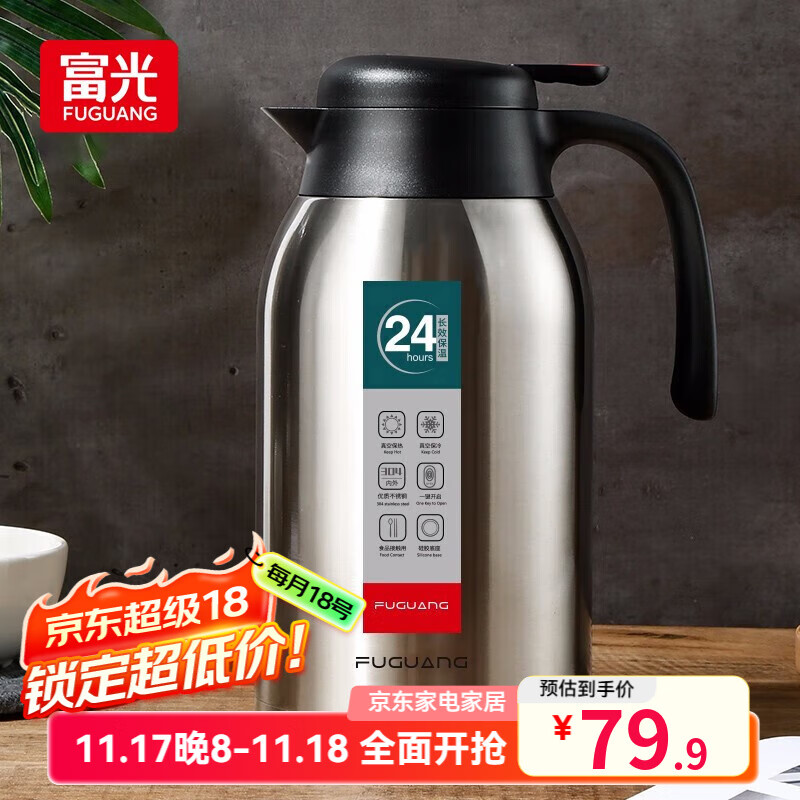 富光 保温壶家用热水瓶开水瓶大容量不锈钢保冷壶家用保温咖啡杯壶 钢本色 2200ml