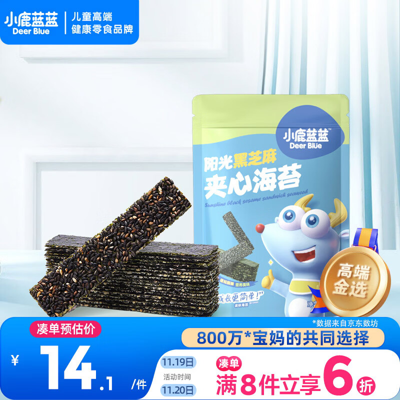 小鹿蓝蓝 黑芝麻海苔夹心脆 宝宝儿童零食鲜脆海苔酥脆口感出游零食 40g