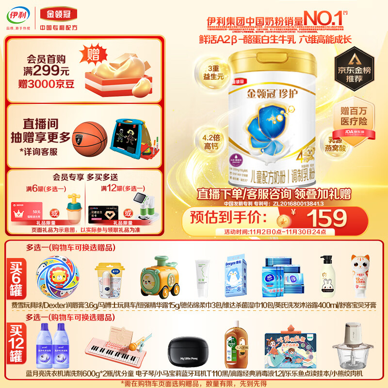 伊利金领冠珍护【消化吸收】儿童A2β-酪蛋白奶粉4段(3-6岁)800g