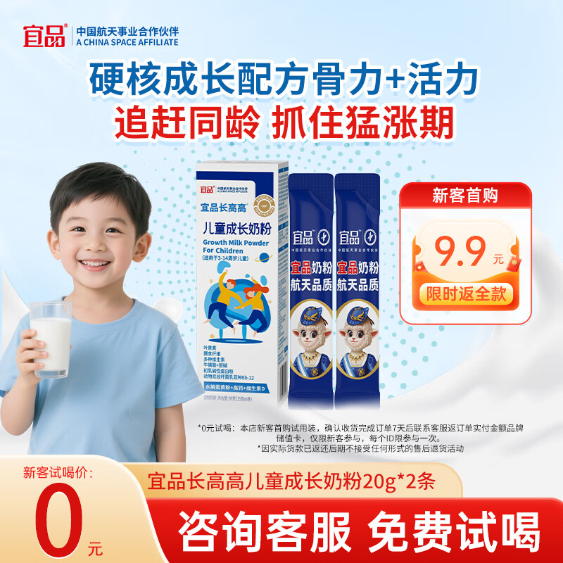 宜品长高高儿童成长奶粉4段3-6岁以上15岁内青少年高钙奶粉40g