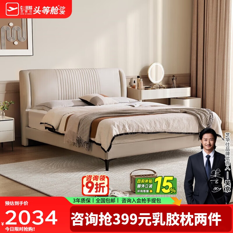 芝华仕(CHEERS)五星布床现代极简双人床科技布主卧轻奢高脚芝华士C393白1.5m