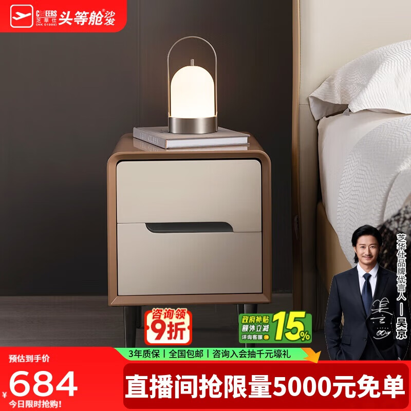 芝华仕床头柜卧室收纳柜意式简约高脚储物家具床头柜G032中茶色