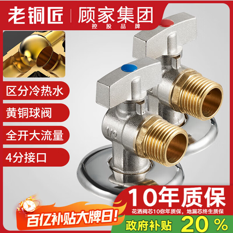 老铜匠(LTJ)燃气热水器球阀 壁挂炉球芯角阀全开大流量全铜冷热4分厨房三角阀