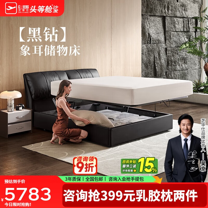 芝华仕(CHEERS)五星皮床现代简约真皮大床主卧平移储物床带床垫芝华士黑1.8m