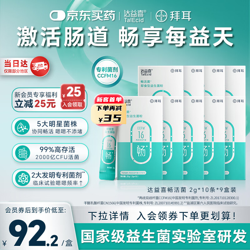 达益喜拜耳益生菌 成年人肠胃消化 畅活菌 专利两歧双歧杆菌 9盒巩固装