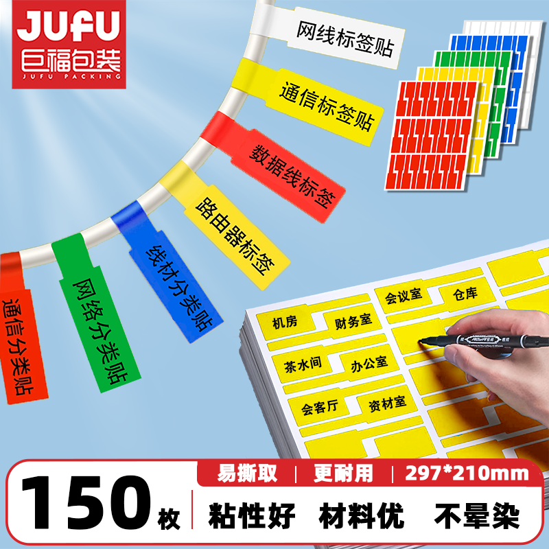 巨福网线标签贴纸 A4网络布线不干胶贴纸 通信机房线缆标签打印纸 P型分类贴手写/激光打印 五色150张
