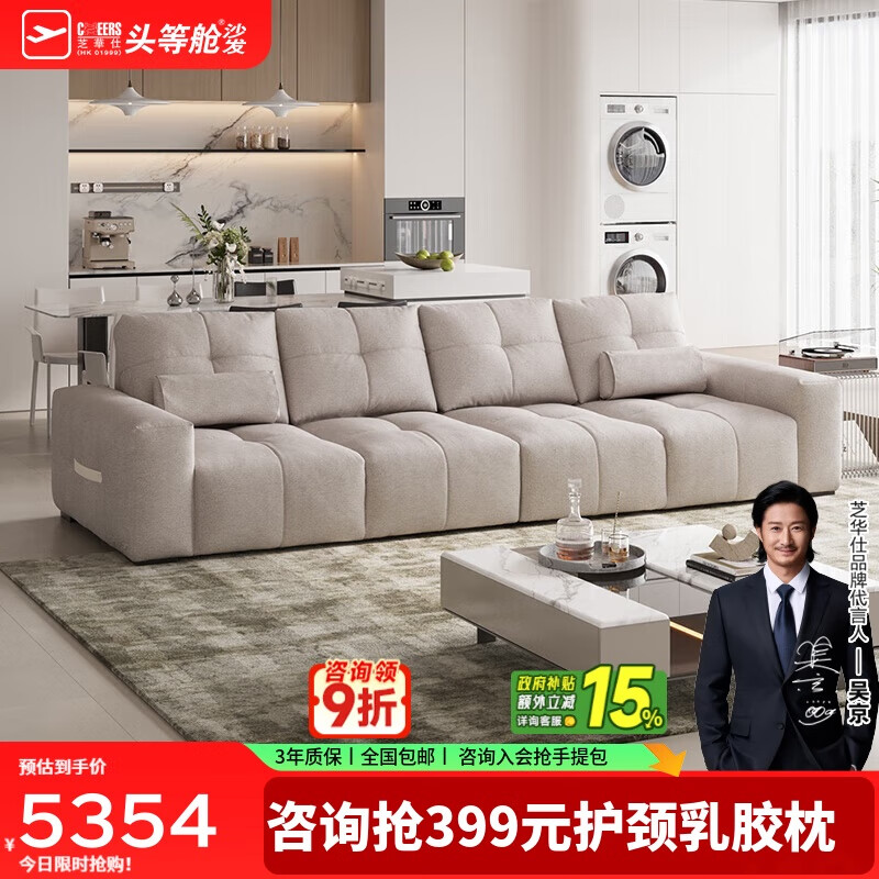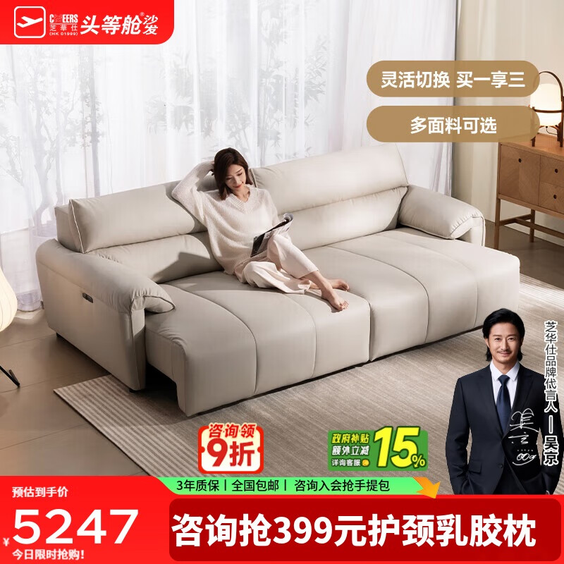 芝华仕(CHEERS)头等舱电动沙发客厅布艺沙发床一体两用小户型奶油风芝华士30591