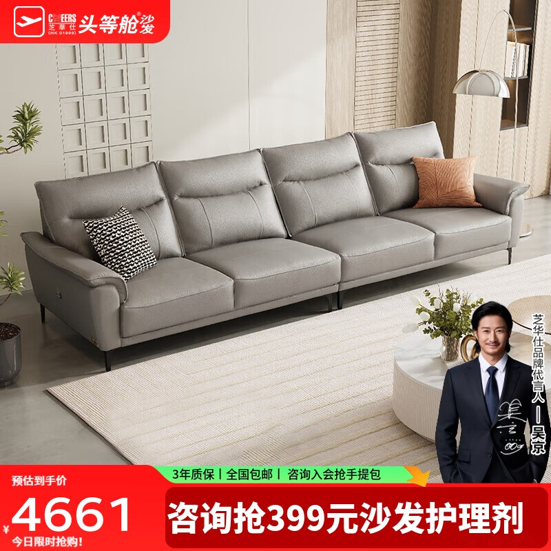 芝华仕(CHEERS)都市真皮沙发现代简约客厅直排经典百搭家具芝华士3118灰3.17m