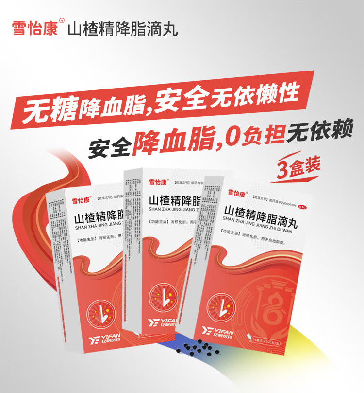 亿帆山楂精降脂滴丸55mg*300丸 3盒装 消积化瘀 用于高血脂症