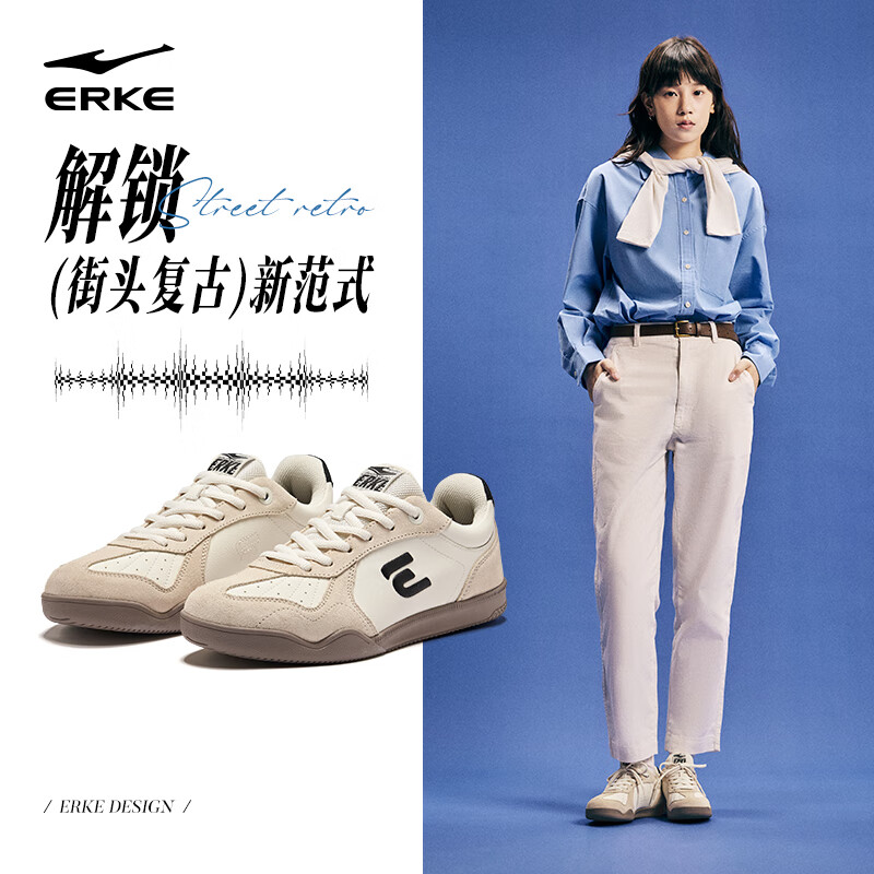 鸿星尔克板鞋女薄底鞋秋季女款休闲德训鞋复古运动鞋子女丨灵动