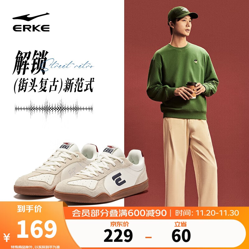 鸿星尔克板鞋男秋季男款德训鞋休闲复古运动薄底鞋丨灵动