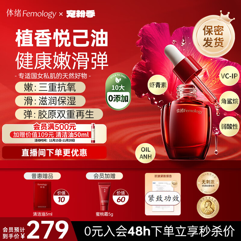 体绪(Femology)私密粉嫩精华油20ml私处保养水润紧致胶原滋养护理抗初老以油养肤