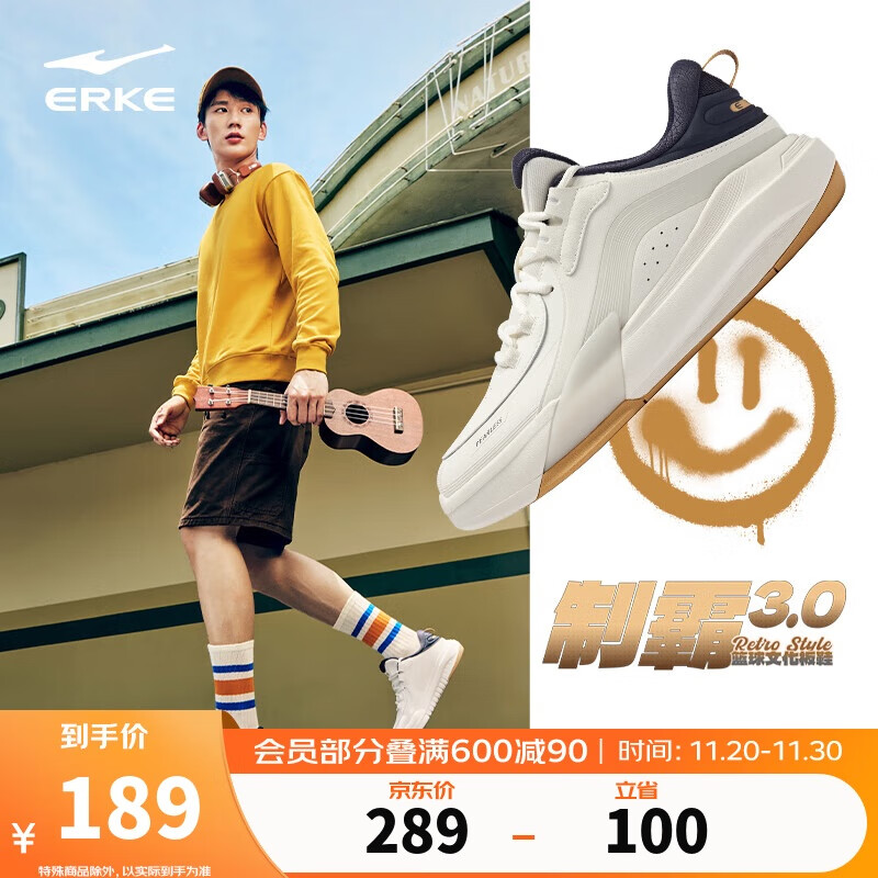鸿星尔克板鞋男秋季新款厚底滑板鞋百搭篮球风休闲运动鞋丨制霸3