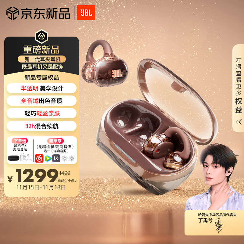JBL 【丁禹兮同款】SOUNDGEAR CLIPS琉璃扣 开放式无线蓝牙耳机耳夹式不入耳挂耳式运动新款 灵琥珀