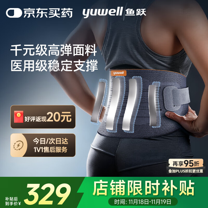 鱼跃(Yuwell)医用级护腰带腰部支撑腰间盘突出腰肌劳损保暖久坐神器WY01F-L码
