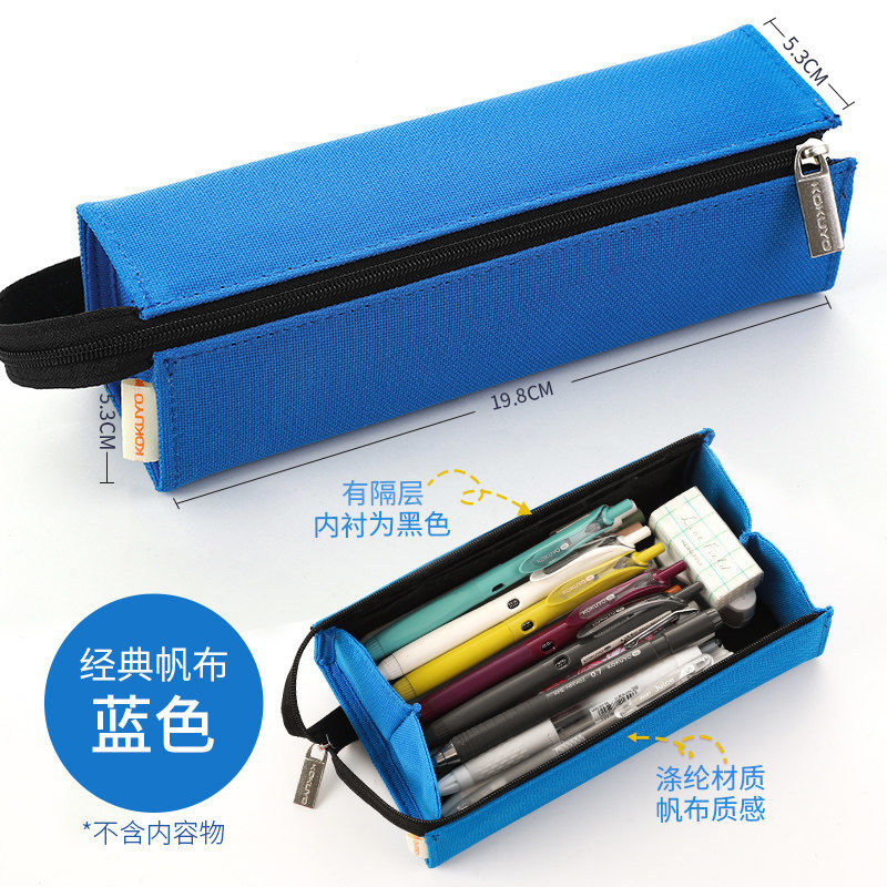 国誉(KOKUYO) 日本KOKUYO国誉笔袋简约日系方形帆布学生硅胶铅笔盒大容量文具盒 【经典帆布】蓝色