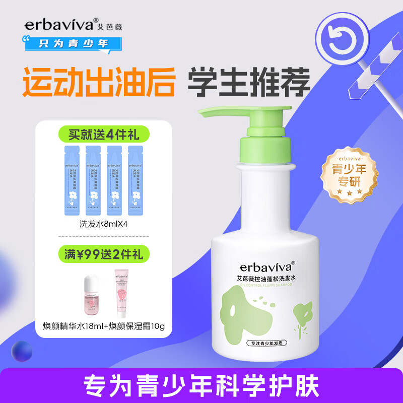 艾芭薇(Erbaviva)控油蓬洗发水 青少年初高中学生去屑止痒 青柠香300ml 300ml控油洗发水