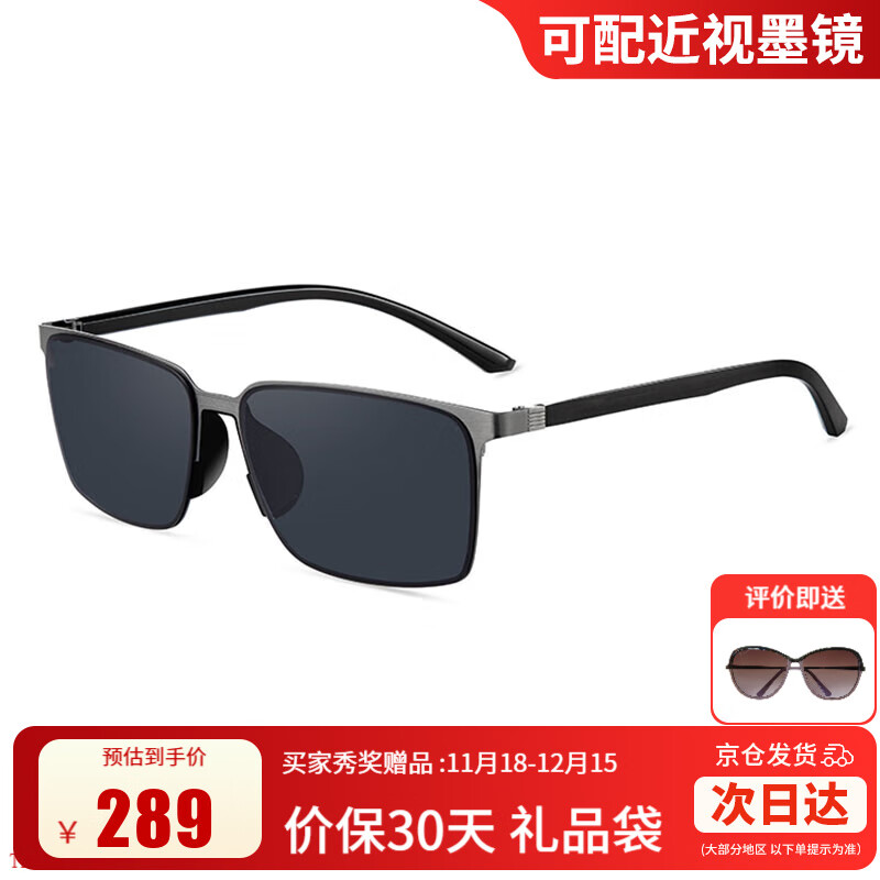 海伦凯勒太阳镜男方框偏光墨镜一体式商务开车司机镜方形钓鱼眼镜可配近视 N21P-中枪+全色灰(无度数)