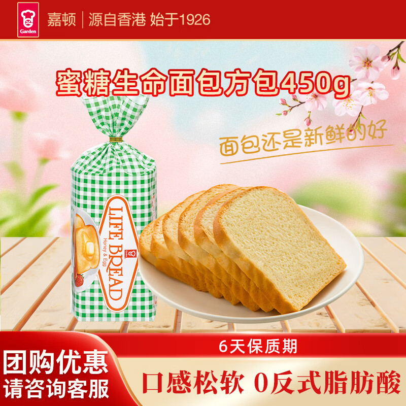 嘉顿(Garden)生命面包方包净含量450g/袋蜜糖鸡蛋面包营养早餐饱腹面包零食