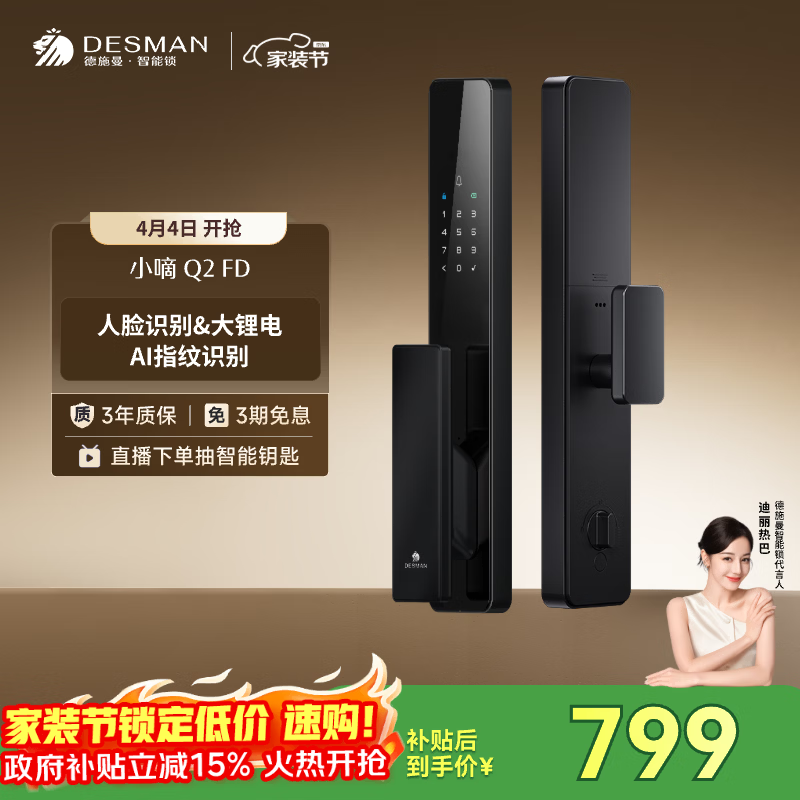德施曼(DESMAN)智能门锁3D人脸识别 指纹密码防盗 小嘀 Q2FD【一价全包】