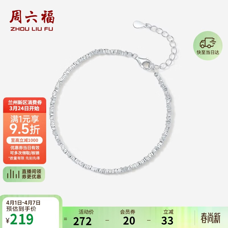 周六福碎银几两手链轻奢女S925银生日礼物D0713448 16+3cm
