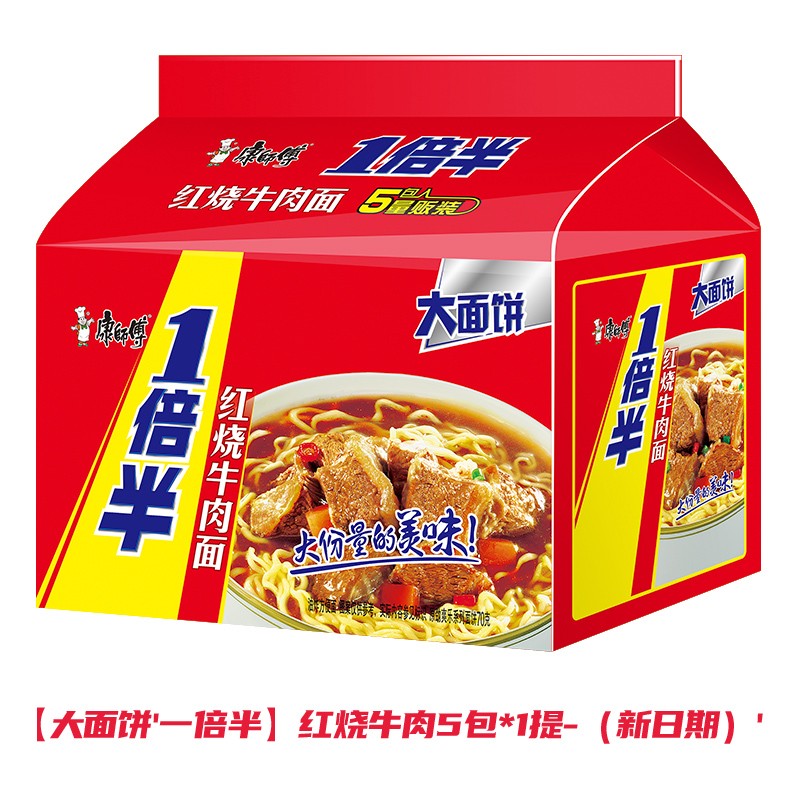 康师傅方便面整箱批发泡面袋装大食袋大面饼红烧牛肉混搭夜宵速食食品 【大面饼'一倍半】红烧牛肉5包 五连包