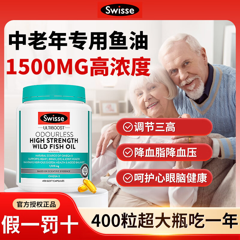 Swisse鱼油鱼肝油中老年人高纯度深海鱼油omega3老年人软化血管清理血栓 【高浓度鱼油】1500mg深海鱼油400粒