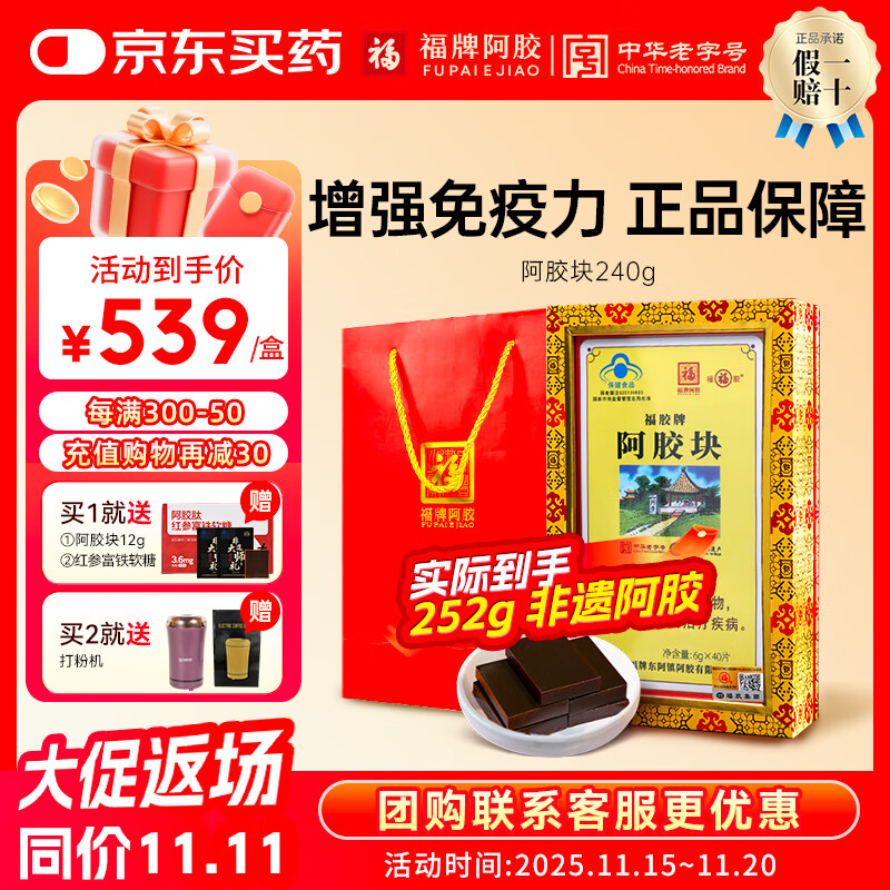 福牌阿胶240g阿胶块礼盒装增强免疫力(健字号)礼品中华老字号 240g【送阿胶肽软糖+阿胶块】