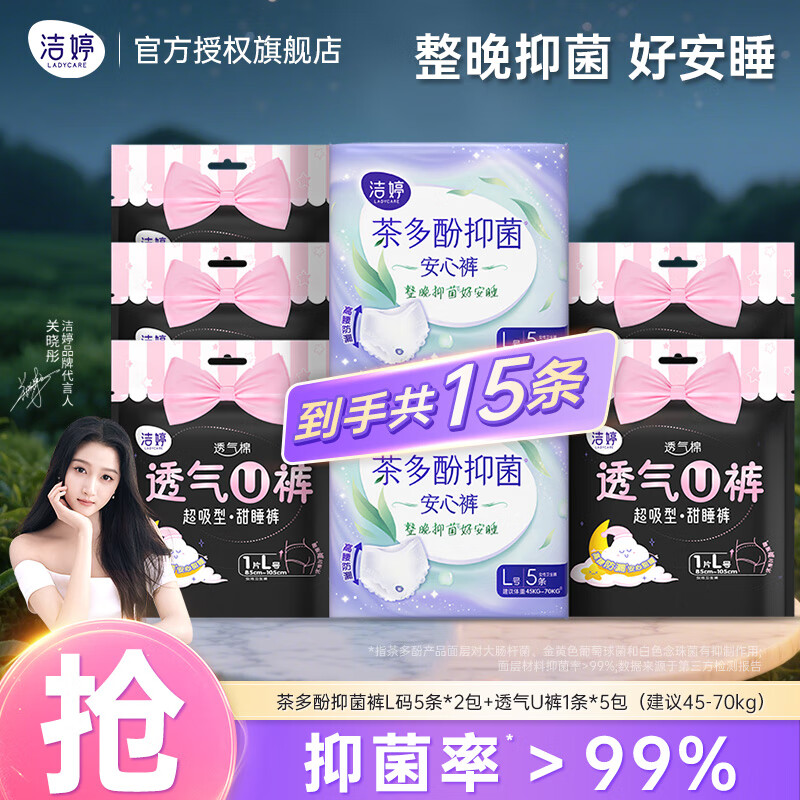 洁婷透氧U裤熟睡安睡裤夜安裤甜睡裤长夜用裤型卫生巾L码组合15条