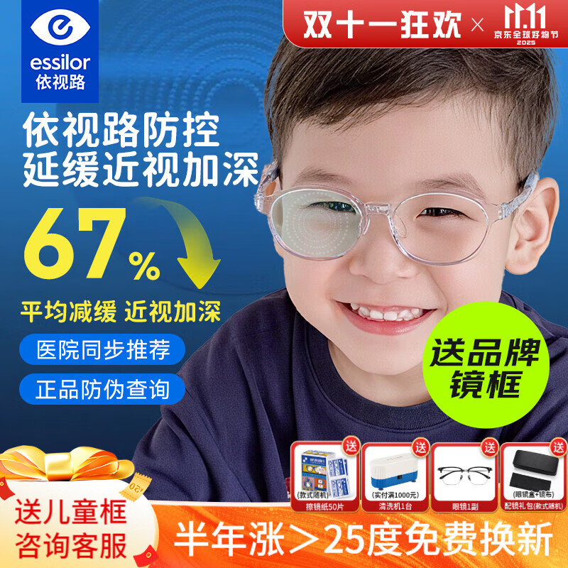 依视路星趣控眼镜儿童青少年离焦防控镜片减缓度数增长学生配镜钻晶膜岩 配儿童镜片星趣控防控离焦镜片膜岩联系客服 1.591