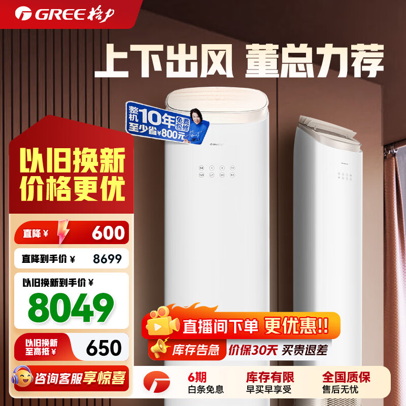 格力(GREE)空调柜机王者/京致上下送风 防直吹 新1级变频冷暖冷酷外机 衡温客厅节能立式空调家电国家补贴20% 3匹 一级能效 (72518)FNhAb-B1