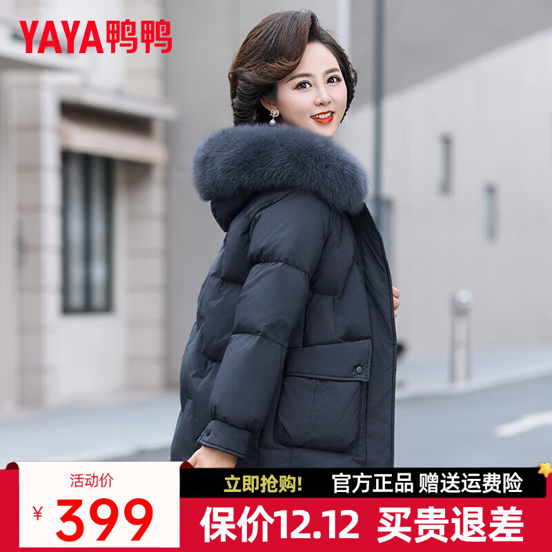 鸭鸭(YAYA)妈妈装羽绒服女中长款冬季新款中老年加厚保暖狐狸毛领羽绒外套CF 黑色YE3B605542Q 3XL