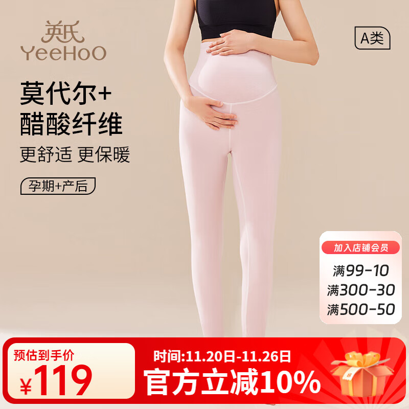 英氏【莫代尔醋酸】秋季孕妇裤子产后保暖裤孕中晚期托腹秋裤 粉色 170