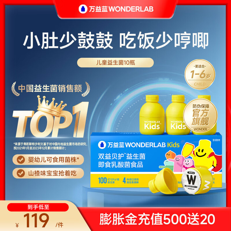 万益蓝WonderLab 儿童益生菌 小黄瓶益生菌婴儿 山楂味即食乳酸菌 【建议拍3】吃饭香香-10瓶装