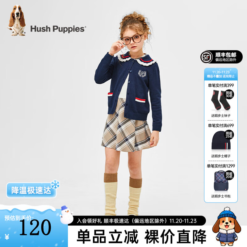 暇步士(Hush Puppies)童装儿童女大童春季优雅甜美柔软舒适百搭开身线衣 藏蓝 140 cm