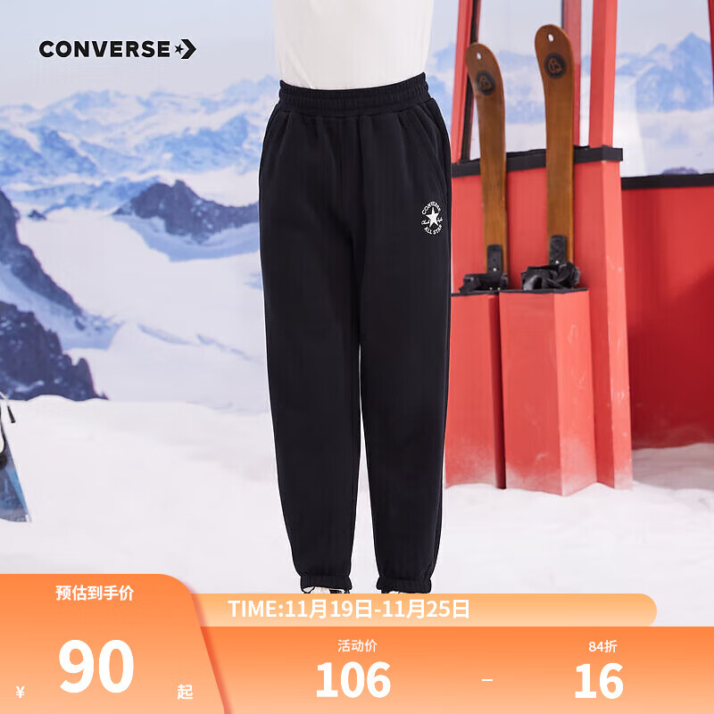 匡威(Converse)匡威童装2023秋冬男童女童加绒长裤新款裤子儿童运动裤卫裤休闲裤 正黑色 160 /69 【建议身高158-170cm】