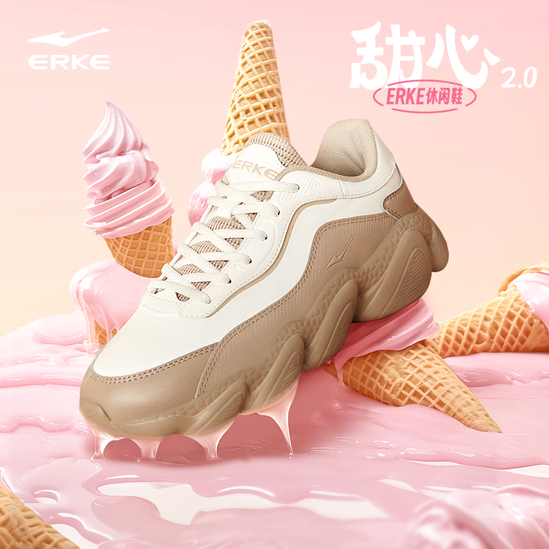 鸿星尔克女鞋运动鞋秋季厚底老爹鞋舒适女子休闲鞋革面简约鞋子女甜心2.0 微晶白/雾灰棕 38