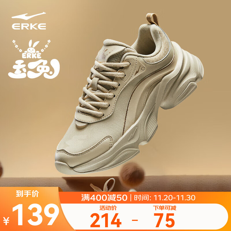 鸿星尔克休闲鞋秋季新款舒适厚底老爹鞋软弹女子运动鞋子简约百搭玉兔女鞋 暖亚麻 38